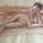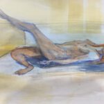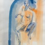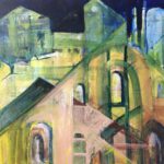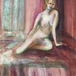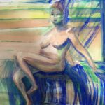 Blumenkäufer. Acryl hinter Glas, 50×70